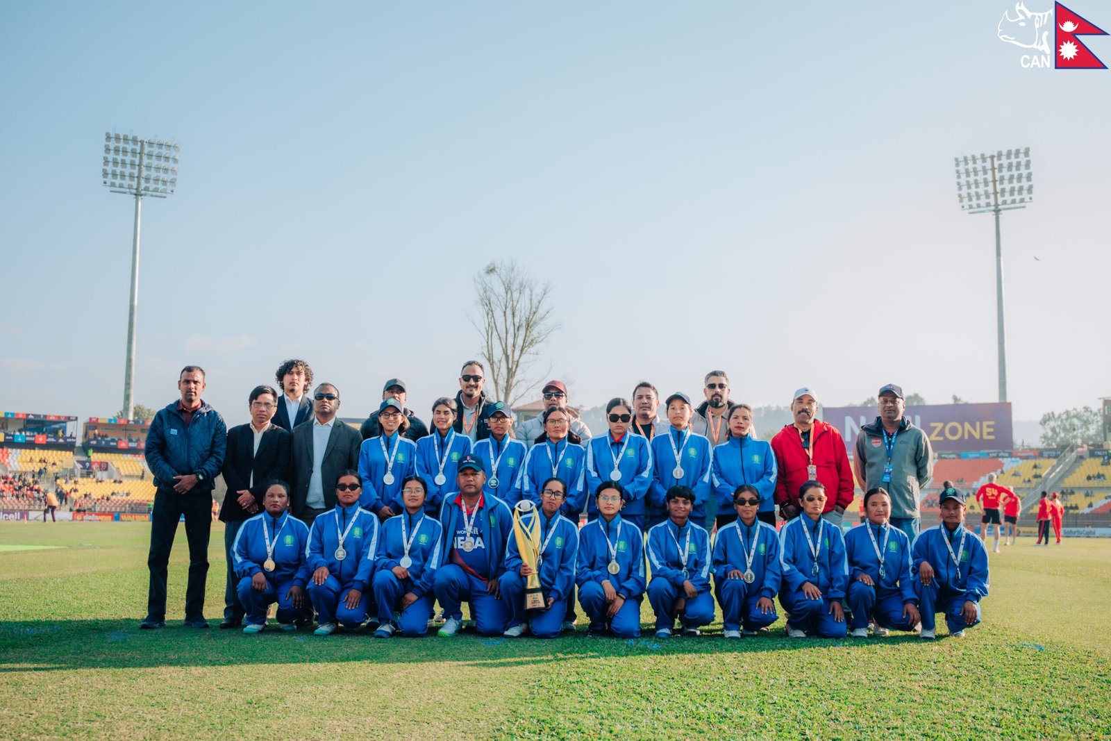 काठमाडौँ- नेपाल क्रिकेट संघ (CAN) ले आज एक विशेष समारोहमार्फत नेपाल दृष्टिविहीन महिला क्रिकेट टोलीलाई नगद रु १० लाख प्रदान गरी सम्मान गरेको छ। हालै भारत र श्रीलङ्कामा सम्पन्न दृष्टिविहीन महिला टी–२० विश्वकप २०२५ मा नेपालले उपविजेता बन्न सफल भएको थियो।