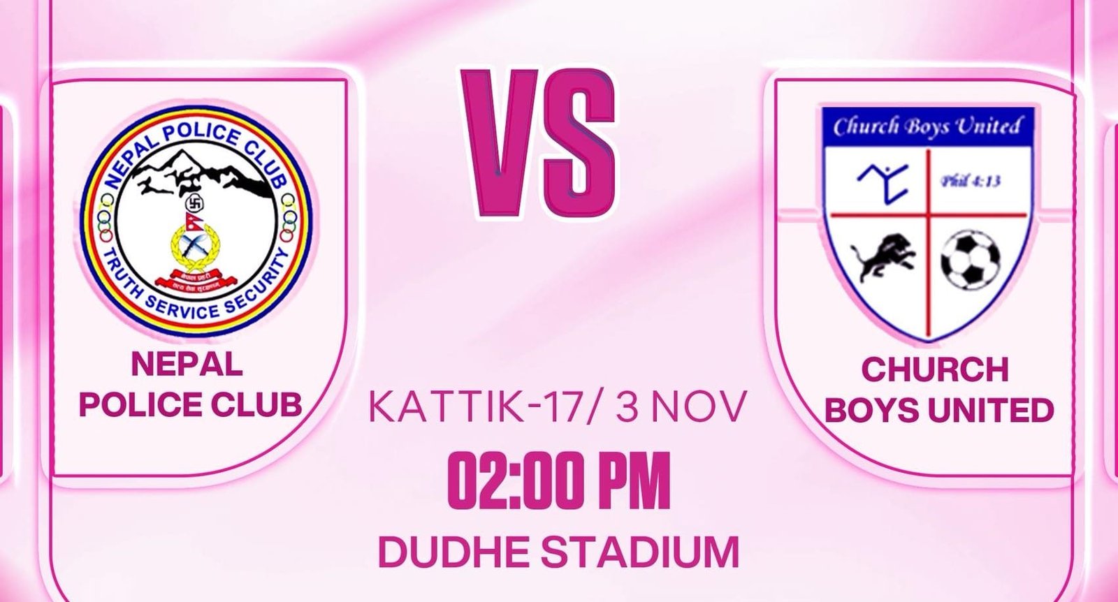 प्रतियोगिताअन्तर्गत दोस्रो खेल कात्तिक १८ गते नेपाल एपीएफ क्लब र भारतको सिक्किमस्थित सिङ्लिङ स्पोर्टिङ क्लबबीच हुनेछ। तेस्रो खेल कात्तिक १९ गते संकटा क्लब र झापा क्लबबीच तथा चौथो खेल कात्तिक २० गते त्रिभुवन आर्मी क्लब र आरएस पोखरा क्लबबीच हुने तय भएको छ।