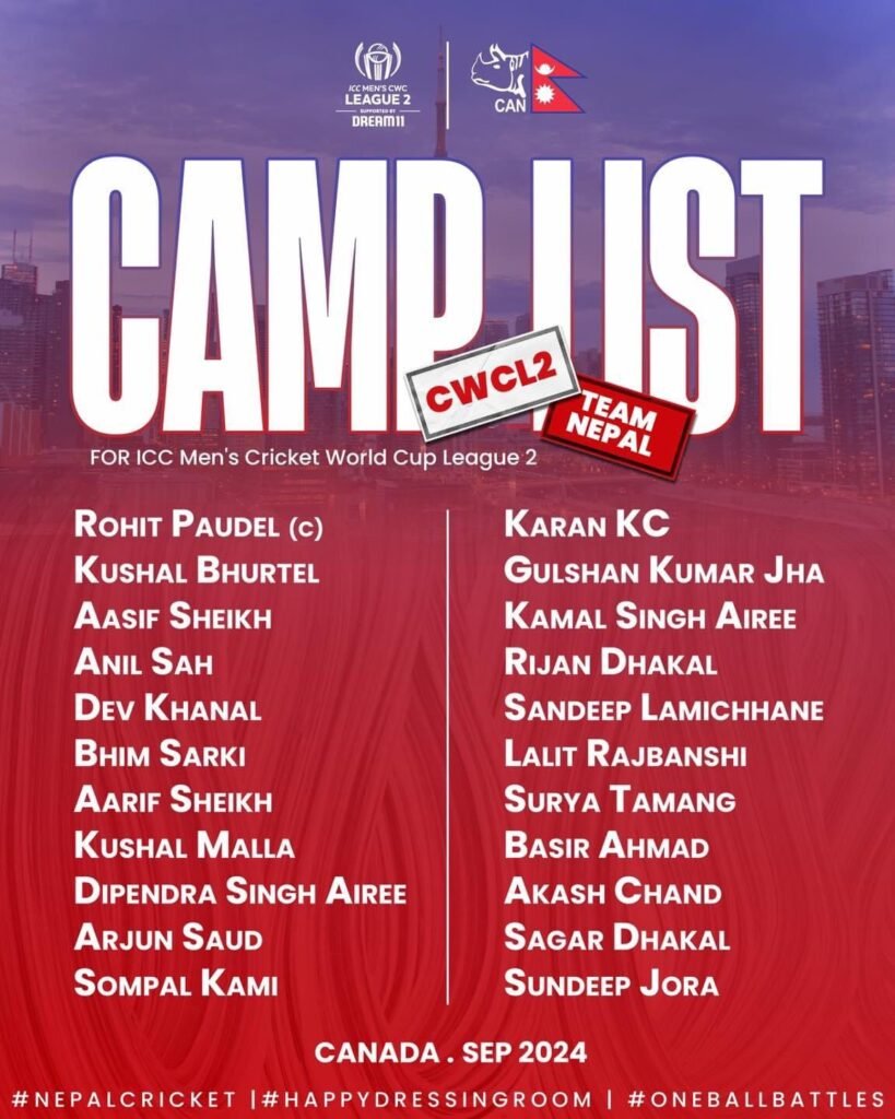 नेपाल क्रिकेट संघ(क्यान)ले रोहितकुमार पौडेलको कप्तानीमा २२ सदस्यिय टोलीको घोषणा गरेको हो ।