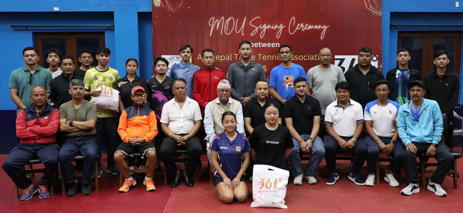 लैनचौरस्थित राष्ट्रिय टेबलटेनिस प्रशिक्षण केन्द्रमा भएको सम्झौताका दौरान ३६१ डिग्रीले चीनको हाङझावमा भएको १९ औं एसियाली खेलकुदमा सहभागी टेबलटेनिस खेलाडीसहितको टोलीलाई पनि पोशाक प्रायोजन गरेको जानकारी दिएका छन्।