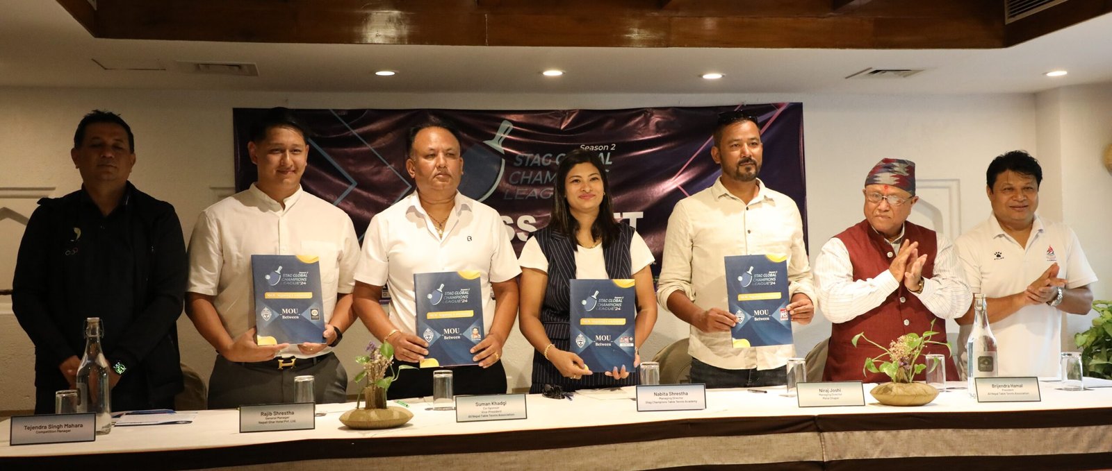 काठमाडौं- नौ पटककी टेबलटेनिस राष्ट्रिय च्याम्पियन नबिता श्रेष्ठ प्रबन्ध निर्देशक रहेको स्ट्याग च्याम्पियन्स टेबलटेनिस एकेडेमी प्रा.लि. को आयोजनामा हुने स्ट्याग ग्लोबल च्याम्पियन्स टेबलटेनिस लिग– सिजन २ का लागि सह–प्रायोजन सम्बन्धी सम्झौता शनिबार भएको छ ।