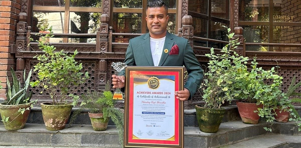 आइतबार भृकुटीमण्डपस्थित नेपाल पर्यटन बोर्डमा आयोजित ‘एचिभर्स अवार्ड २०२४’ कार्यक्रममा खेलकुद विधातर्फ मण्डेकाजी सम्मानित भएका हुन् ।