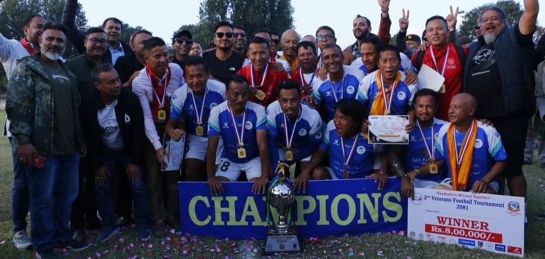 काठमाडौँ- फुटबलर्स मिसन टुगेदरद्धारा मध्यपुर युथ एसोसियसनको खेल मैदानमा सन्चालित दोश्रो भेट्रान्स फुटबल प्रतियोगिता २०८१ अन्तर्गत आज सम्पन्न फाईनल खेलमा ठमेल टुरिजम डेभलपमेन्ट काउन्सीलले फ्रिडम फाईटर युवा क्लबलाई २–१ गोलले पराजित गरी उपाधी जित्यो ।