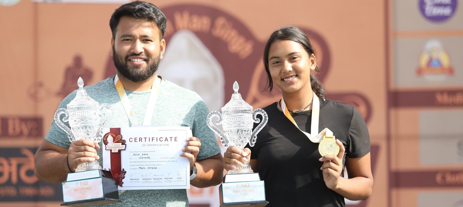 काठमाडौँ- सुनिरा थापा र रितिक राणा चौथो वीर गणेशमान सिंह राष्ट्रिय टेनिस प्रतियोगिताको सिंगल्समा शनिबार च्याम्पियन भएका छन् ।