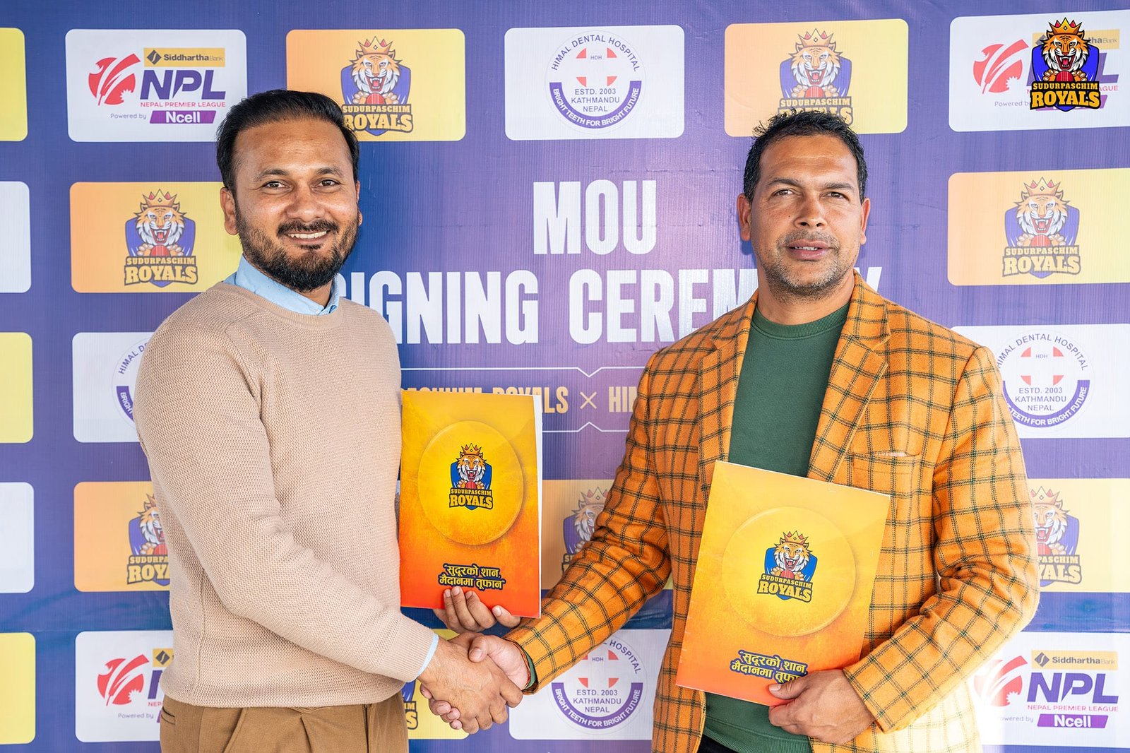 काठमाडौंमा एक कार्यक्रममाझ हिमाल डेन्टल र सुदूरपश्चिम रोयल्सबीच हाइजिन पार्टनरको लागि सम्झौता भएको हो । सम्झौतामा हिमाल डेन्टलका तर्फबाट अध्यक्ष राजेन्द्र प्रसाद भट्ट र सुदूरपश्चिम रोयल्सका तर्फबाट सिइओ प्रकाश खड्काले हस्ताक्षर गर्नुभयो ।