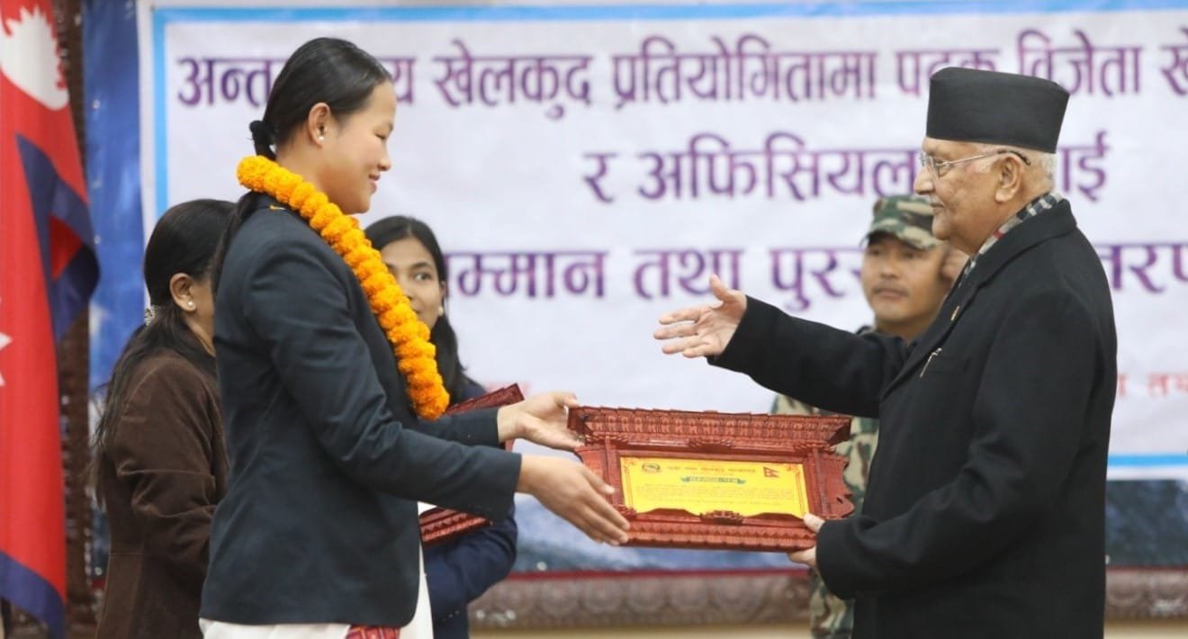 राखेपका संरक्षक प्रधानमन्त्री केपी शर्मा ओली र खेलकुद मन्त्री तेजुलाल चौधरीले खेलाडीसहितको टोलीलाई बालुवाटारमा आयोजित एक कार्यmक्रमबीच पुरस्कृत गरे । सो अवसरमा राखेपका सदस्य–सचिव टंकलाल घिसिङ, खेलकुद मन्त्रालयका सचिव सुमनराज आर्यल, सम्बन्धित राष्ट्रिय खेल संघका पदाधिकारीलगायतको उपस्थिति रहेको थियो ।