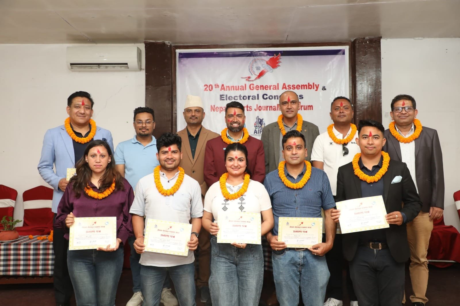 काठमाडौं– नेपाल खेलकुद पत्रकार मञ्च (एनएसजेएफ) को २०औं साधारणसभा तथा निर्वाचनले निरञ्जन अधिकारीको नेतृत्वमा ११ सदस्यीय नयाँ कार्यसमिति चयन गरेको छ ।