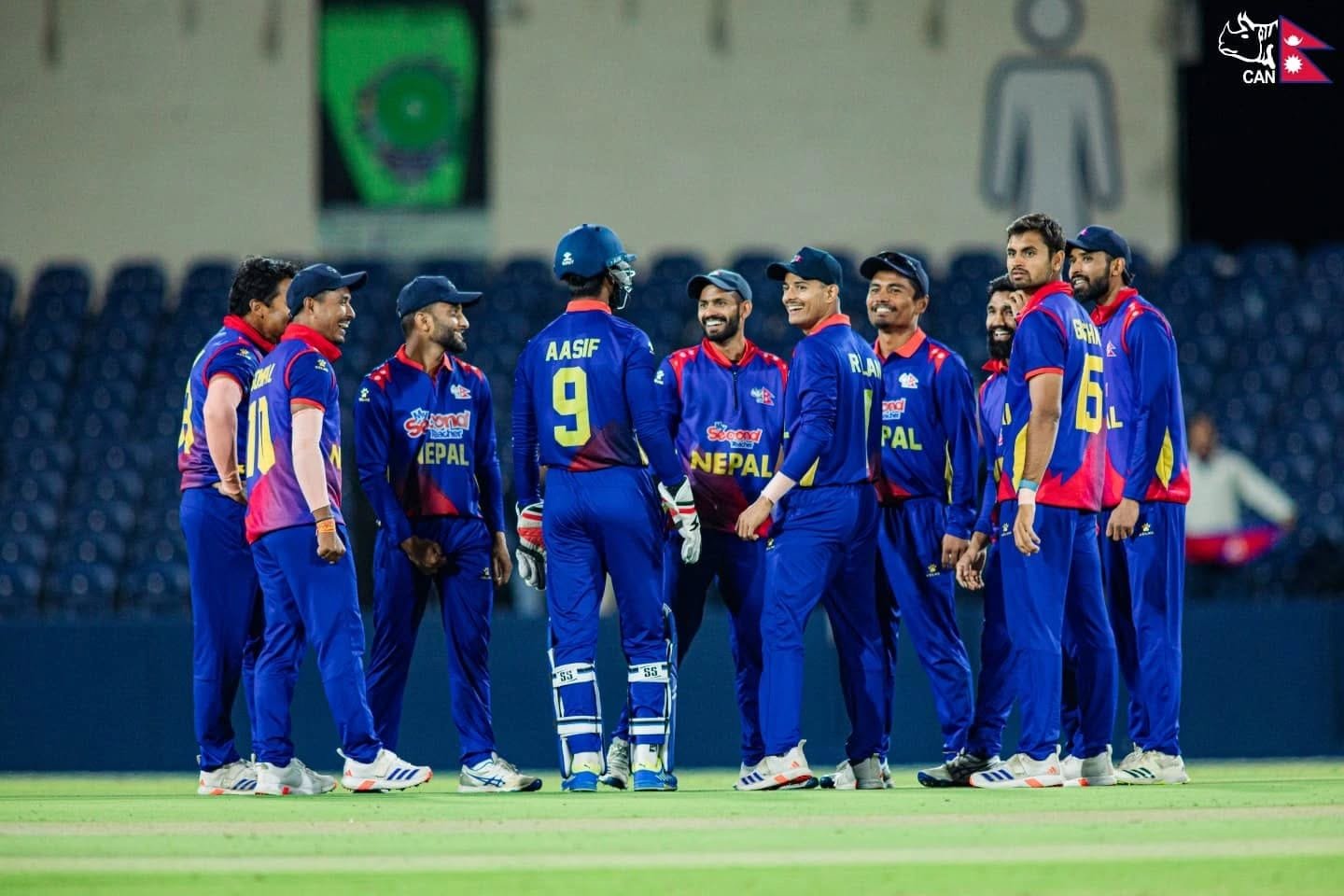 गुलशनले ८० रनको योगदान दिँदा आरिफ ७२ रनमा नटआउट रहे । सोमपालले नटआउट ९ रन जोडे । नियमित कप्तान रोहित पौडेलको अनुपस्थितिमा कप्तानी सम्हालेका दीपेन्द्र सिंह ऐरीले २२ रनको योगदान दिए । उनी आउट हुँदा नेपाल ५६-६ को दयनीय अवस्थामा थियो । तर गुलशन र आरिफले सताउन विकेटका लागि १ सय ३३ रनको बलियो साझेदारी बुन्दै जितको आधार बनाए ।