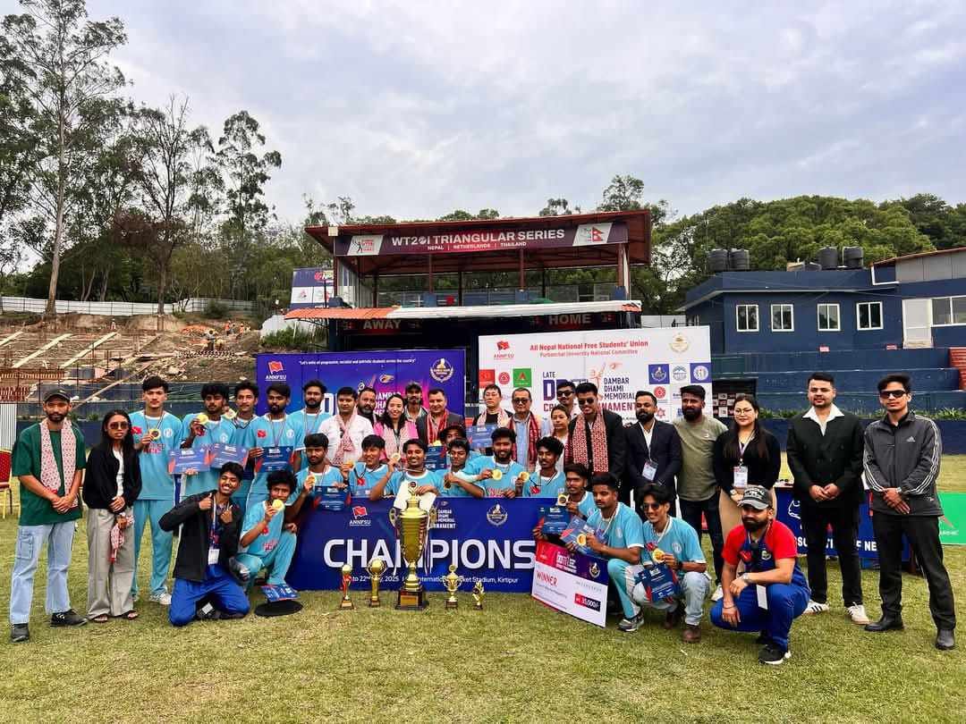 किर्तिपुर, काठमाडौं: कान्तिपुर सिटी कलेजले काठमाडौं इन्जिनियरिङ कलेजलाई ४ रनले पराजित गर्दै स्व. डम्बर धामी स्मृति टी–१० क्रिकेट प्रतियोगिताको उपाधि जितेको छ।