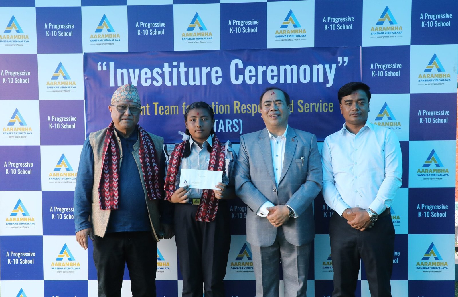 गल्कोपाखास्थित आरम्भ संस्कार विद्यालयले टेबलटेनिस खेलाडी प्राज्ना महर्जनलाई सोमबार नगदसहित सम्मान गरेको छ । विद्यालयका कक्षा कप्तान तथा विद्यालयका लागि विद्यालय लिडर गरी ७२ जना विद्यार्थीलाई विभिन्न पदमा पदस्थापन गरिएको कार्यक्रममा प्राज्ना नगद १५ हजारसहित सम्मानित भइन् ।