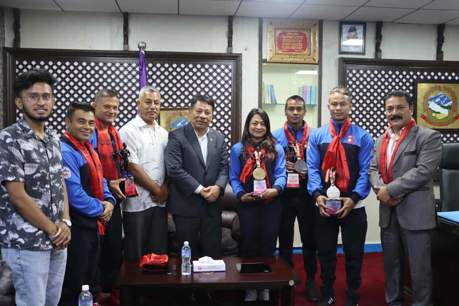भुटानको थिम्पूमा गत जुन ११ देखि १५ सम्म सम्पन्न प्रतिस्पर्धामा नेपालले विभिन्न समुहतर्फ उपाधि जितेको थियो। कार्यवाहक प्रधानमन्त्री सिंहले शहरी विकास मन्त्रालयमा सोमबार विजेता खेलाडीहरुलाई सम्माानसहित बधाई ज्ञापन गरेका हुन्। सो क्रममा कार्यवाहक प्रधानमन्त्री सिंहले अन्तर्राष्ट्रिय जगतमा उत्कृष्ट प्रदर्शन गर्दै नाम राख्न सफल भएको भन्दै खेलाडीहरुको प्रशंसा गरे।