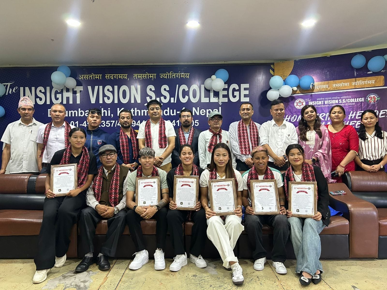 काठमाडौं। एउटै व्यवस्थापमा सञ्चालित द इन्साइट भिजन सेकेन्डरी स्कुल र राजधानी क्याम्पसले एएफसी वुमेन्स एसियन कप छनोटमा उत्कृष्ट प्रदर्शन गरेकी कप्तान सावित्रा भण्डारीसहित १० फुटबलरलाई वुधबार नगद र छात्रवृत्तिसहित सम्मान गरेको छ ।