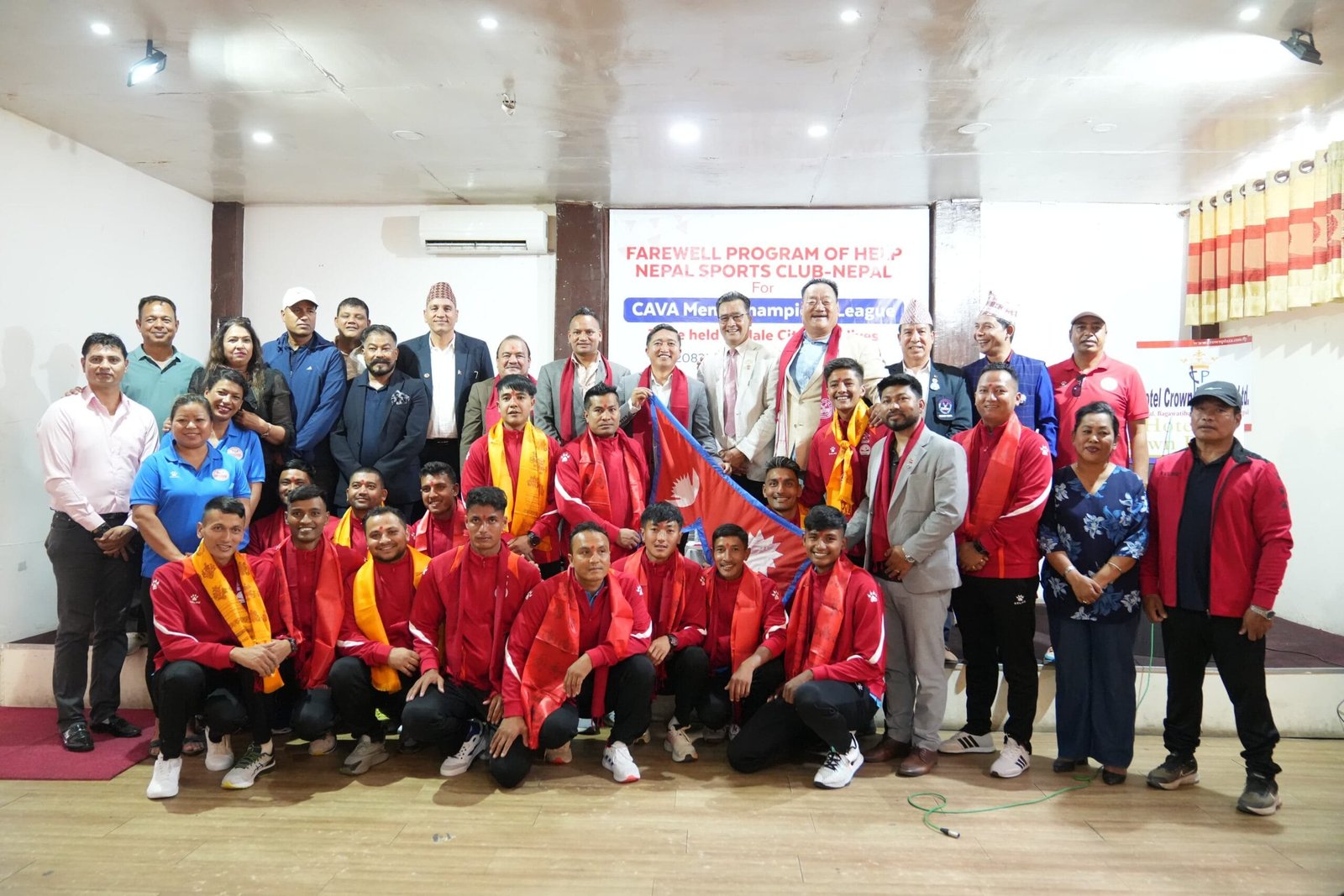 राष्ट्रिय खेलकुद परिषद् (राखेप) का सदस्य–सचिव टंकलाल घिसिङ, राखेप बोर्ड सदस्य जगतसिंह धामी, नेपाल भलिबल संघका अध्यक्ष जितेन्द्र बहादुर चन्द, राखेप तालिम तथा प्रशिक्षण विभागका निर्देशक विष्णुबहादुर सिंह लगायतले बिदाई गरे ।