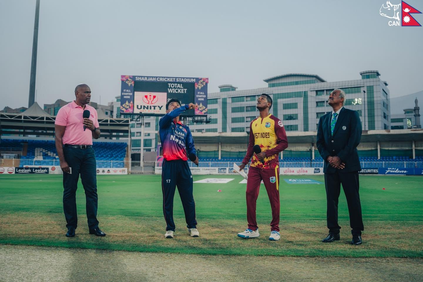 काठमाडौं । युनिटी कप टी–२० अन्तर्राष्ट्रिय सिरिजको तेस्रो तथा अन्तिम खेलमा वेस्टइन्डिजले टस जितेर नेपाललाई पहिले ब्याटिङको निम्तो दिएको छ।