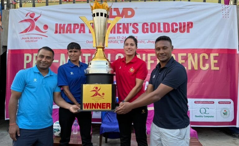 झापा — झापा महिला गोल्ड कपको आयोजनाकर्ता समितिले महिला फुटबलका अनुभवी प्रशिक्षक सन्त रायमाझीलाई विशेष सम्मान गरेको छ।