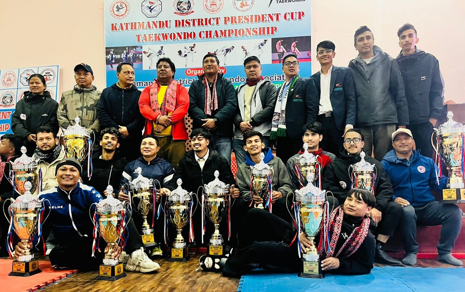 काठमाडौं : काठमाडौं जिल्ला तेक्वान्दो संघको आयोजनामा काठमाडौं जिल्ला प्रेसिडेन्ट कप तेक्वान्दो प्रतियोगिता नयाँबजारस्थित बहुउद्देश्यीय मार्सल आर्ट्स केन्द्रमा सम्पन्न भएको छ ।