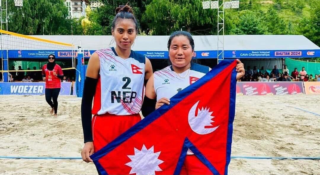 काठमाडौ- कमला पुन र मनिषा चौधरीको नेपाली जोडी भुटानमा जारी काभा बिच भलिबल च्याम्पियनसिपको फाइनलमा प्रवेश गरेका छन्।